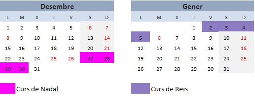 - Curs Nadal del 27 fins al 30 de desembre de 2025.