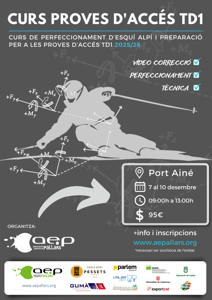 El curs de perfeccionament d’esquí alpí i preparació per proves d’accés TD1 està pensat per aquells/es esquiadors/es que vulguin perfeccionar la seva tècnica i tinguin la intenció d'esdevenir un dia tècnics d’esquí o snowboard. Amb aquest curs es pretén, mitjançant la vídeo correcció i dissertacions sobre la tècnica, reforçar els coneixement tècnic de cada participant i facilitar l’autocorrecció. En la part pràctica es donaran eines per tal de perfeccionar la tècnica en pista i en traçat de gegant.